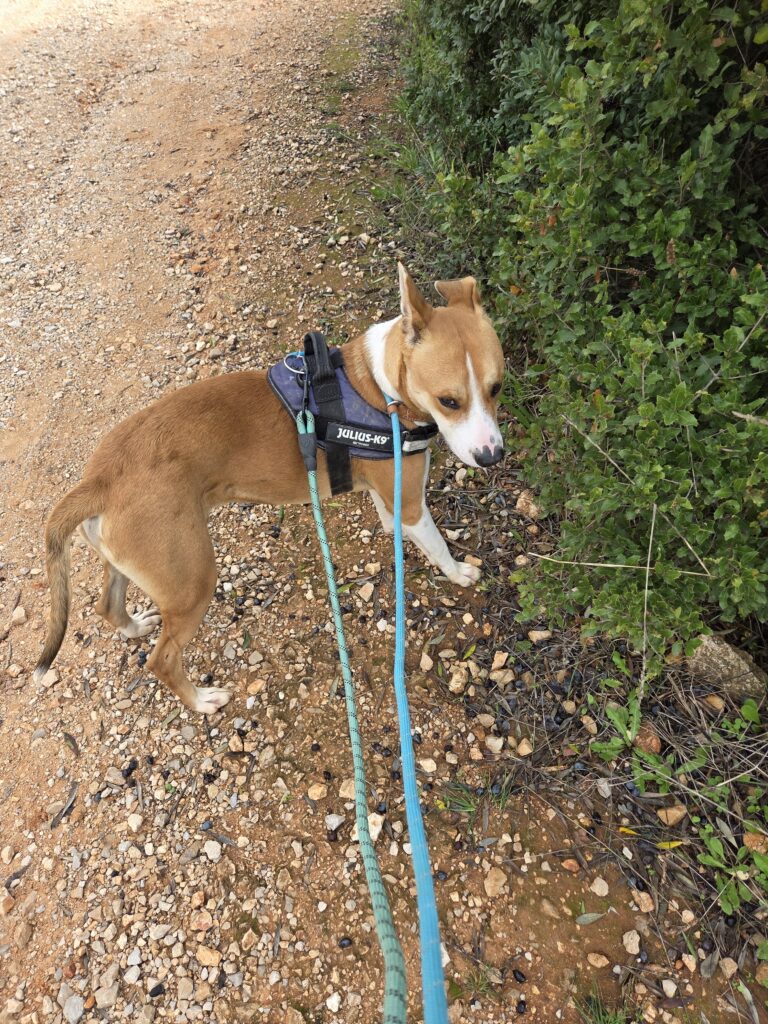 Besonders Elsa, noch Welpe und jetzt 5 1/2 Monate alt, ist noch in vielen Situationen ängstlich,